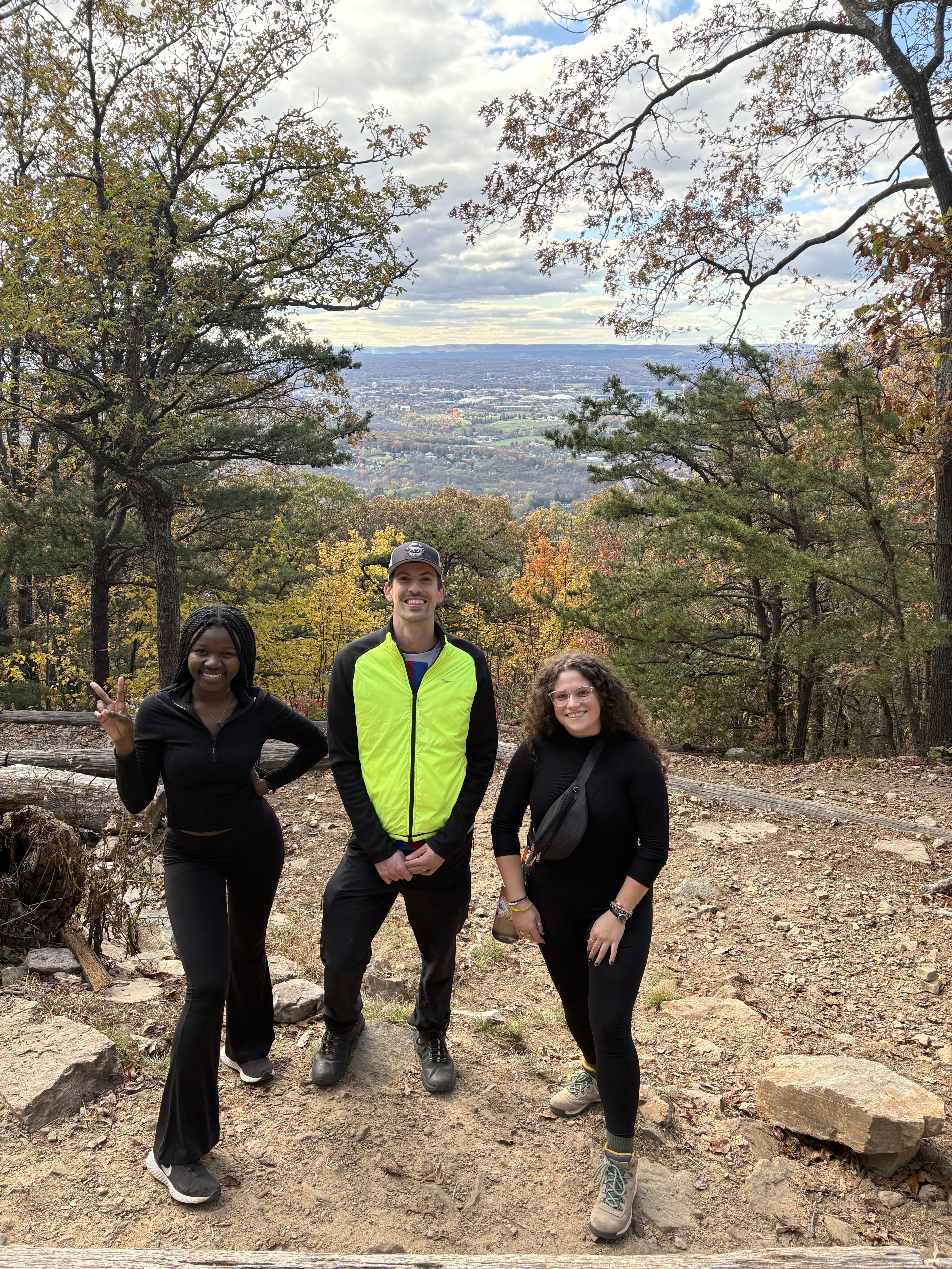 October 2025: CAMP Lab members Martina Adjei-Yeboah, Nic Choquette-Levy, and Olivia DiPrinzio enjoy the view from the top of Mt. Nittany in State College, PA.