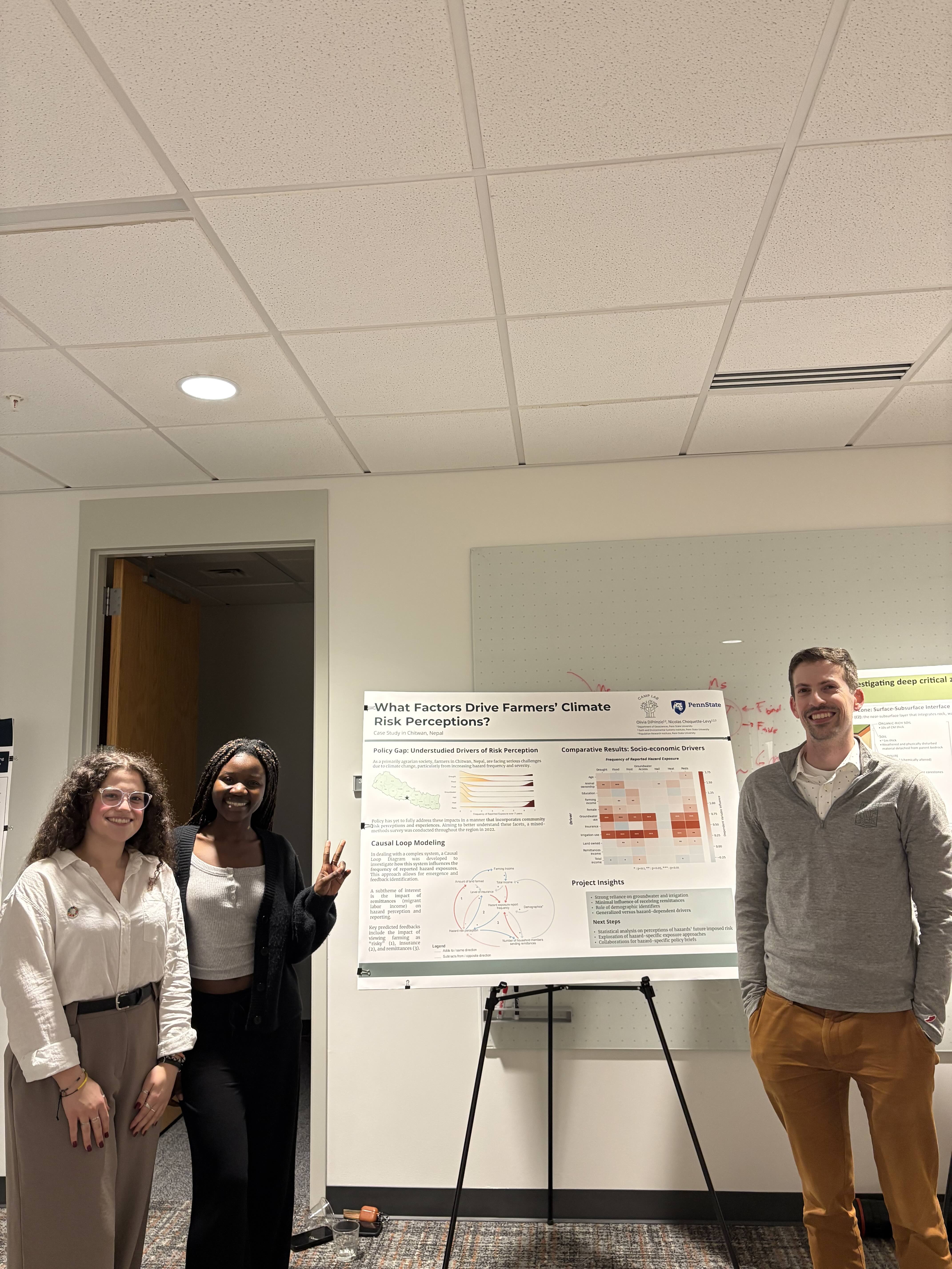 March 2026: CAMP Lab Member Olivia DiPrinzio presents her poster on factors driving Nepali farmers’ climate risk perceptions at the 2026 Penn State Environmental Scholars Colloquium.